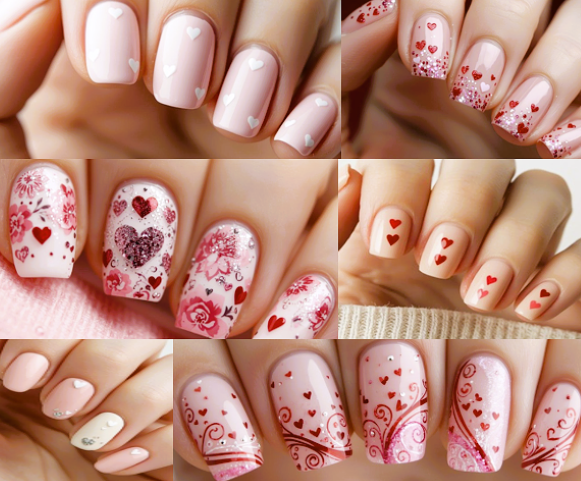 - Add playful Valentine’s-inspired imagery to embrace a fun, whimsical nail look that feels festive yet stylish. From delicate hearts and love motifs to charming accents in pinks, reds, and soft metallics, these designs bring a lighthearted touch to your manicure while still feeling polished and on trend. Great for celebrating the season or simply adding personality to your everyday style, Valentine’s-themed details offer a creative way to experiment with color, texture, and charm, making your nails a subtle statement of joy, romance, and self-expression.