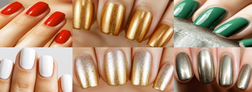 Timeless holiday shades that never go out of style— and for good reason. These iconic colors capture the spirit of the season, bringing warmth, elegance, and the ultimate holiday look. Red nail polish in all shades is bold, classic, endlessly versatile, and the ultimate holiday essential. Green nails bring a refreshing, nature-inspired charm to your look. Think of lush pine trees and sparkling emerald ornaments, perfect for creating cozy yet sophisticated vibes. You can try a deep forest green for a chic, wintery touch or a metallic emerald for a more glamorous statement. White polish isn’t just for summer — it’s a beautiful choice for winter, too! Crisp and clean, white nails evoke snowy landscapes and frosted mornings. Use it alone for a minimalist look, layer it with pearlescent shimmer, or add a touch of silver glitter for that perfect frosty finish. No holiday manicure is complete without a hint of shine. Gold exudes warmth and luxury, complementing both reds and greens beautifully. Silver, on the other hand, brings cool sophistication with a modern edge. Experiment with any of these colors (or mix and match them) to create a fabulous look that perfectly captures the festive spirit of the season!